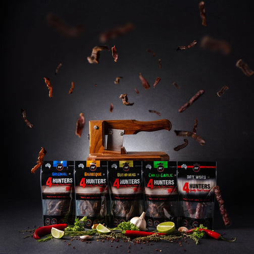Stuck on which flavour to order? Love our products so much, you want them all? Needing a gift for a biltong connoisseur? Family can't decide between flavours? Why not buy them all? Try 4 Hunters Full Experience. Order our entire range at a great discounted rate. 5x100g bags, Original, BBQ, Bushmans, Chilli Garlic & Dry Wors... Great Value, Great Quality, Great Products. We deliver Australia wide and dispatch daily. Get the best biltong online right here and experience the difference.